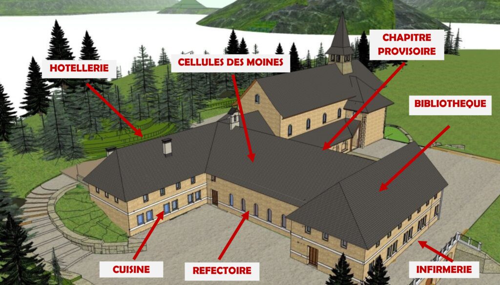 Cette phase achevée, la communauté pourra quitter les bâtiments provisoires en bois, et emménager dans l’Abbaye.
